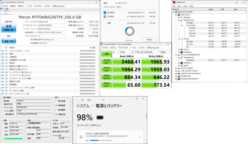 ストレージはM.2 2280 NVMe SSD ( Micron MTFDKBA256TFK )を搭載