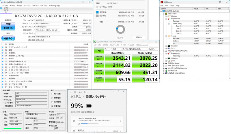 ストレージはM.2 2280 NVMe SSD ( KXG7AZNV512G LA KΙΟΧΙΑ )を搭載