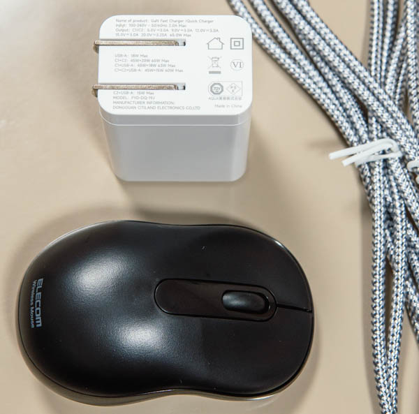 コンパクトなAC電源アダプタと小型無線マウス