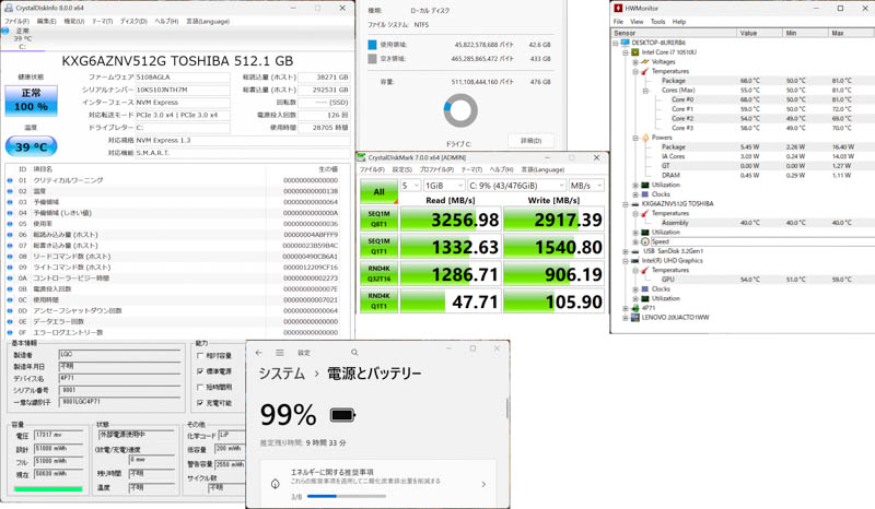 (X1 Carbon 2018/2019/2020 T14 は、PCI Express 4.0 x4をサポートしていないので、3,400MB/s程度になります)