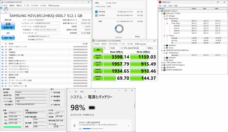 (X1 Carbon 2018/2019/2020 T14 は、PCI Express 4.0 x4をサポートしていないので、3,400MB/s程度になります)