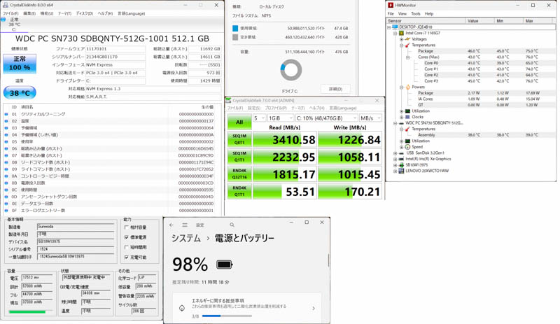 ストレージはM.2 2280 NVMe SSD ( WDC PC SN730 SDBQNTY-512G-1001 )を搭載