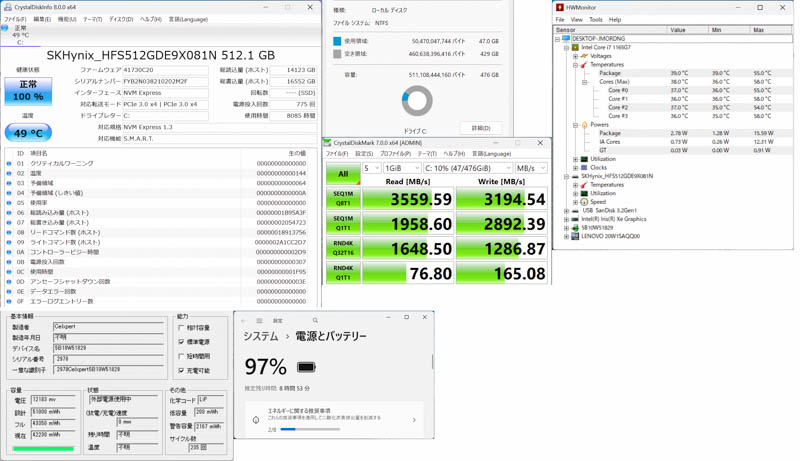 ストレージはM.2 2280 NVMe SSD ( SKHynix HFS512GDE9X081N )を搭載