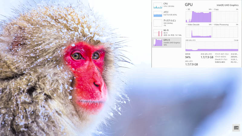 YouTube 動画再生時にもGPUが有効に働き、CPUパワーをセーブします