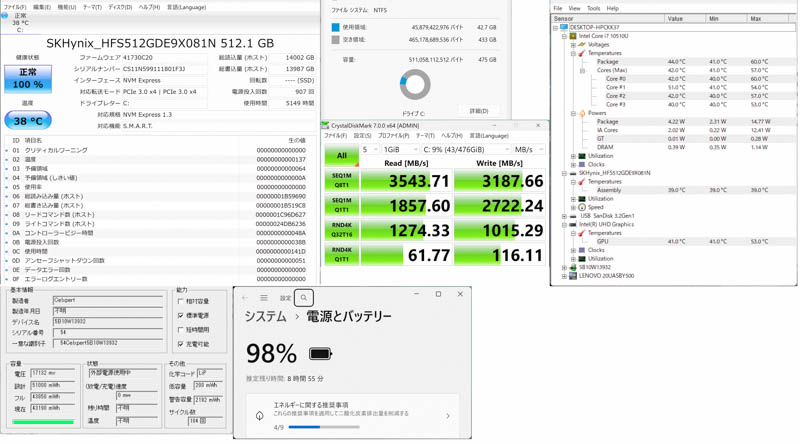ストレージはM.2 2280 NVMe SSD ( SKHynix HFS512GDE9X081N )を搭載