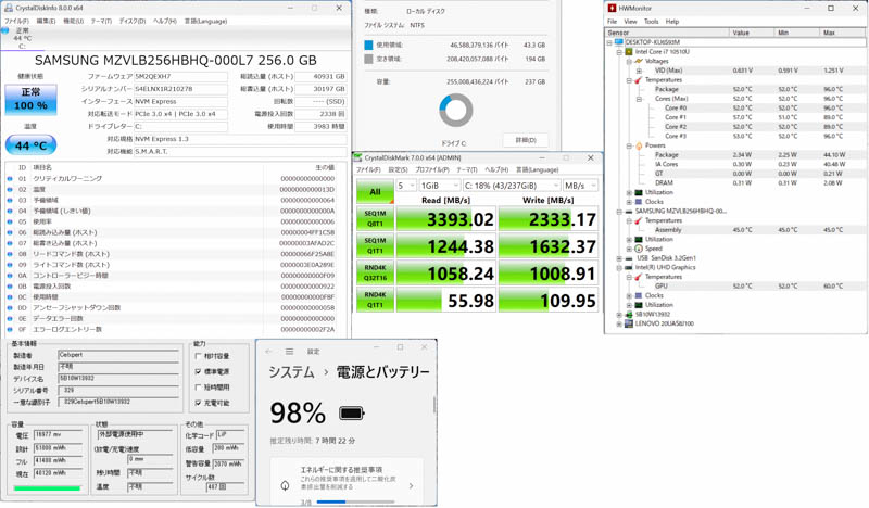 ストレージはM.2 2280 NVMe SSD ( SAMSUNG MZVLB256HBHQ-000L7 )を搭載