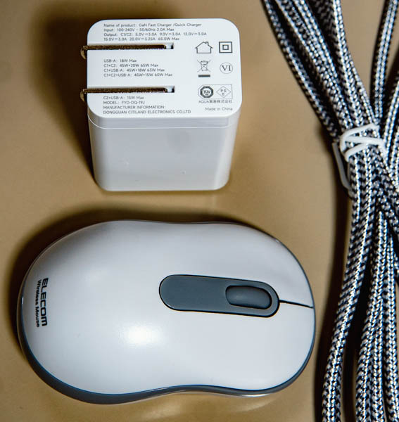 コンパクトなAC電源アダプタと小型無線マウス
