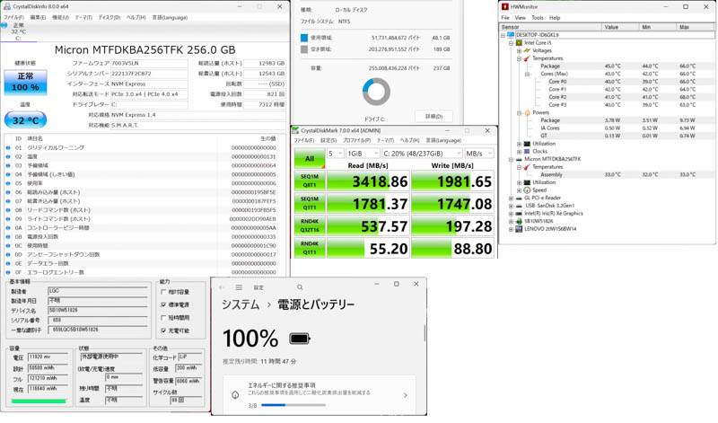 ストレージはM.2 2280 NVMe SSD ( Micron MTFDKBA256TFK )を搭載