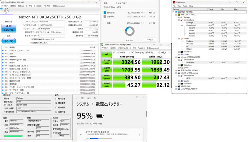 ストレージはM.2 2280 NVMe SSD ( Micron MTFDKBA256TFK )を搭載
