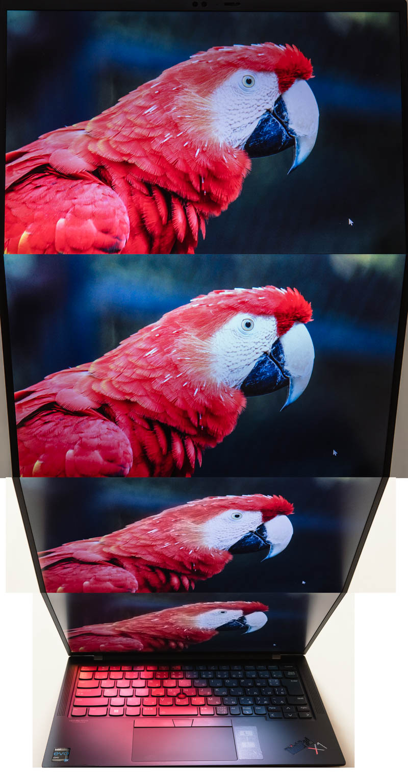 下段:F12を押してThinkPad Privacy Guardを有効にすると、ほとんど見えなくなります