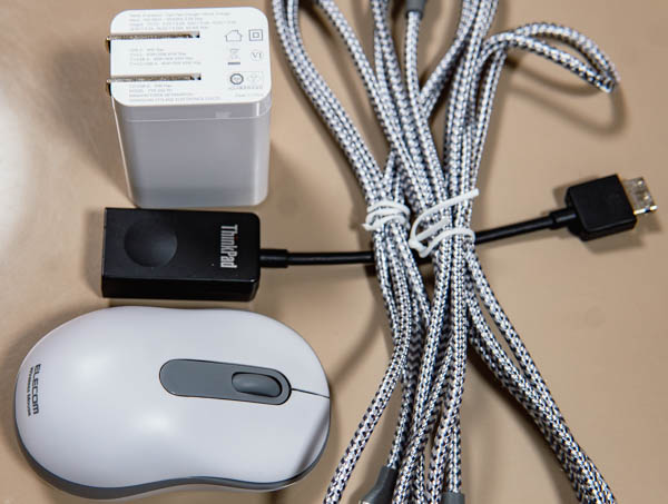 コンパクトなAC電源アダプタと小型無線マウス
