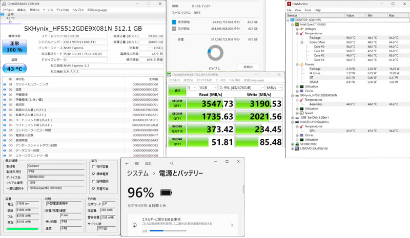 ストレージはM.2 2280 NVMe SSD ( SKHynix HFS512GDE9X081N )を搭載