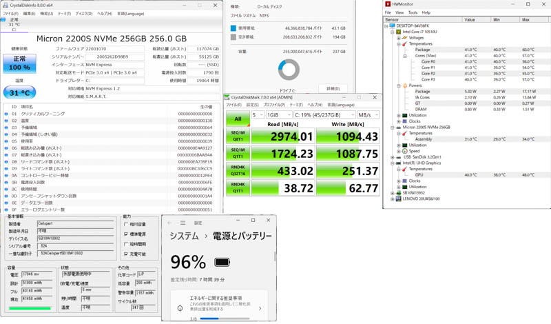 ストレージはM.2 2280 NVMe SSD ( Micron 2200S )を搭載