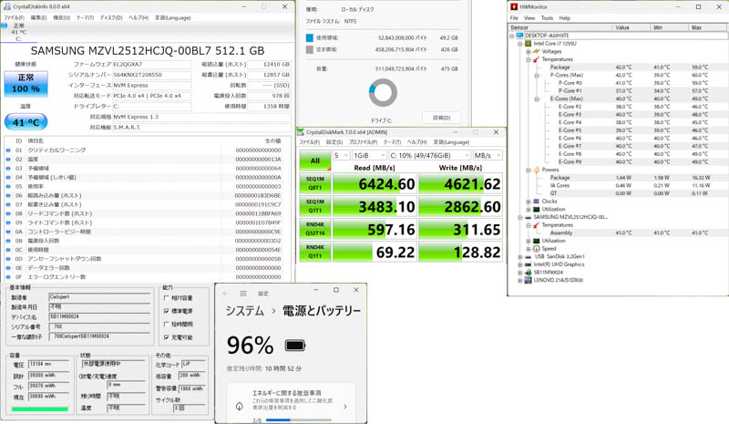 - ACケーブルを外して、バッテリチェック、残り使用可能時間は10h52mと表示