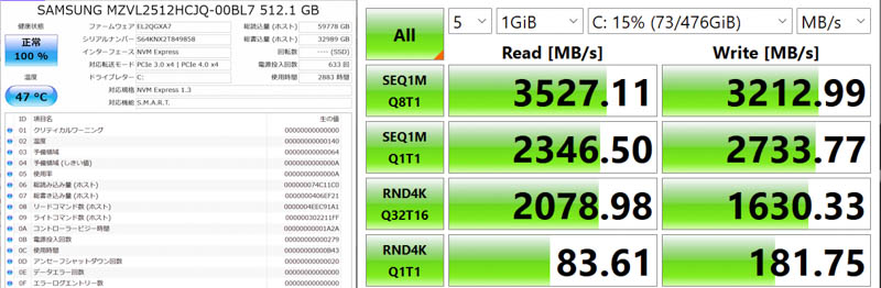 SAMSUNG 512GB SSD は、PCI Express 4.0 x4インターフェースに対応しており