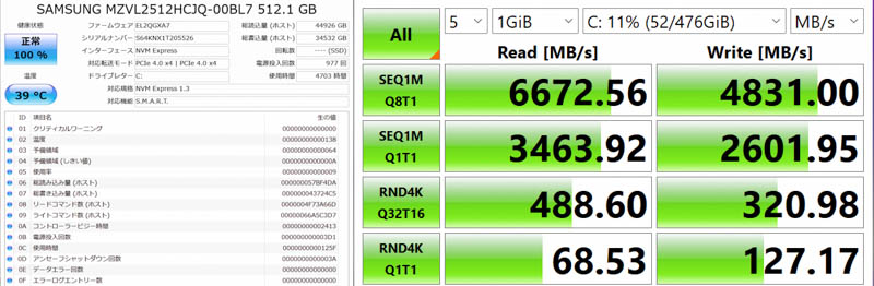 速度 SeqRead:6673MB/s SeqWrite:4831MB/s