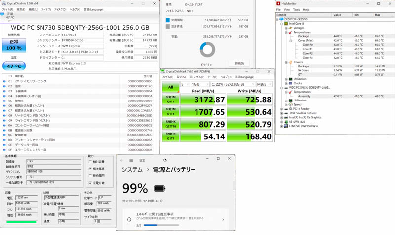 ストレージはM.2 2280 NVMe SSD ( WDC PC SN730 SDBQNTY-256G-1001 )を搭載